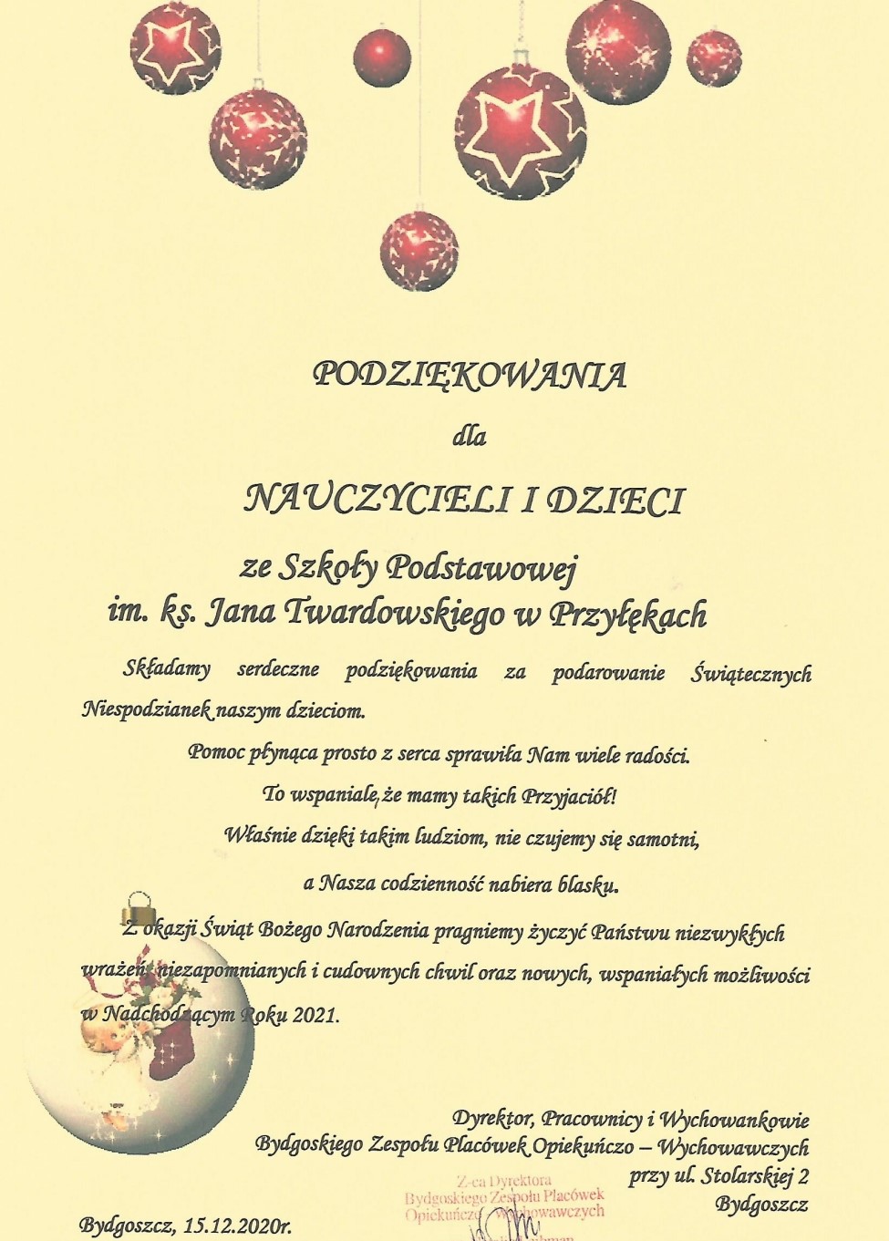 Szanowni Rodzice, Drodzy Uczniowie Za nami pierwszy etap budowy skateparku przy Szkole Podstawowej w Przyłękach. Dzięki inicjatywie uczniów naszej szkoły, wspólnymi siłami spełniliśmy marzenie naszych dzieci. Serdeczne podziękowania za wsparcie projektu składam na ręce Wójta Gminy Białe Błota Pana Dariusza Fundatora, Radnych Gminy Białe Błota, Sołtysa Przyłęk Pana Pawła Zuehlke, Pani Magdaleny Zuehlke – Prezesa …