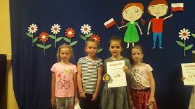 Dziewczynki z grupy „0” wzięły udział w gminnym konkursie plastycznym, organizowanym przez Przedszkole „Wróżka” pt. „Przedszkolak Polak – mały”. 16 .05 nastąpiło rozstrzygnięcie konkursu i wręczenie nagród. II miejsce w konkursie zdobyła Liliana Bentkowska, pozostałe dziewczynki : Natalia Kotulak, Jagoda Modlińska, Weronika Kiełczyńska otrzymały wyróżnienie. Gratulujemy!