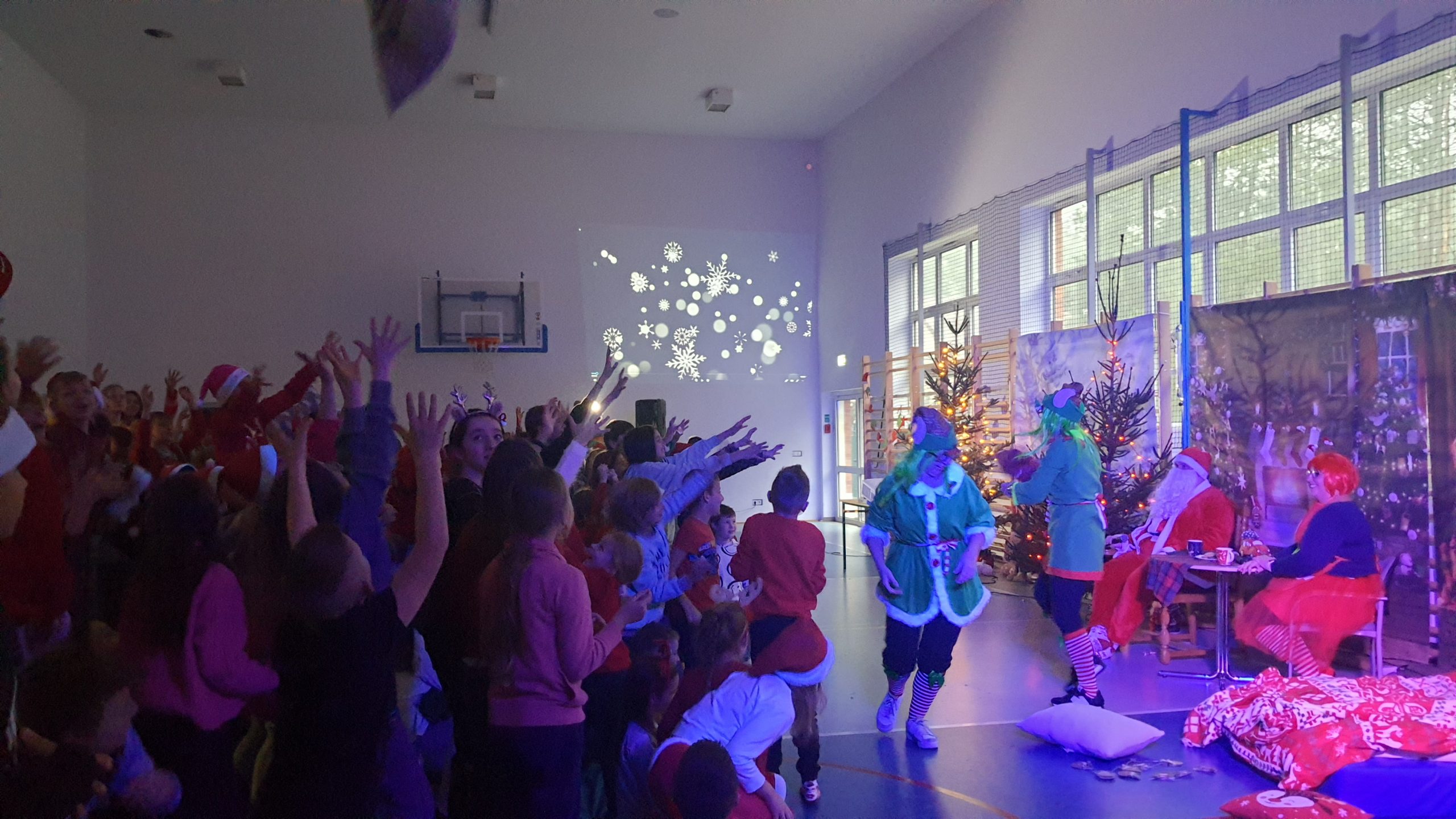 HO HO HO – MIKOŁAJKI na wesoło! Dawniej św. Mikołaj obdarowywał drobnymi prezentami biednych i potrzebujących, a dzisiaj – 6 grudnia w Przyłękach, nauczyciele z tutejszej szkoły zaprosili wszystkich uczniów na przedstawienie chcąc obdarować ich prezentem, którego nie kupi się w żadnym sklepie- to UŚMIECH i RADOŚĆ płynąca ze spotkania z Mikołajem, bo „Kiedy śmieje …